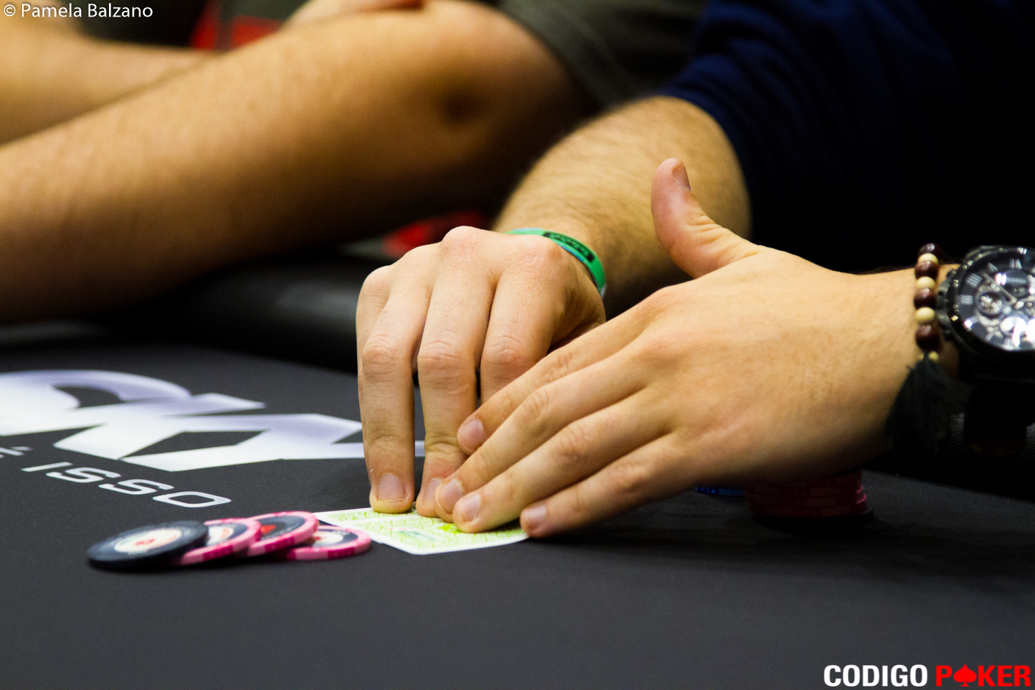 Cuando arribamos a la mesa Mateus Lessa se encontraba con sus últimas 45.000 fichas al centro de la mesa desde la ciega grande con 44 y el jugador ubicado en CO pagando con AK. Las comunitarias no cambiaron el curso de la mano para que Lessa consiga un importante double-up.