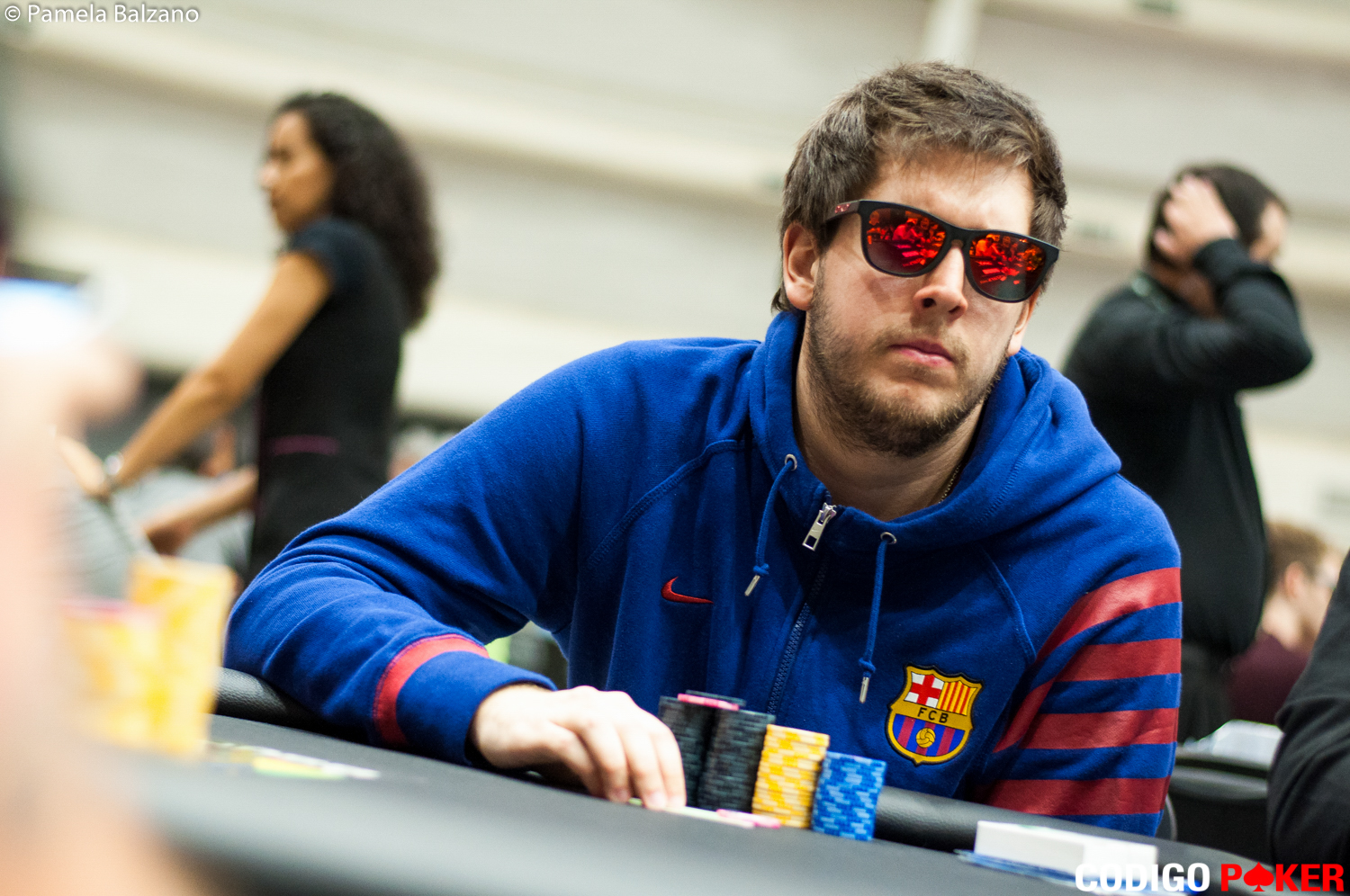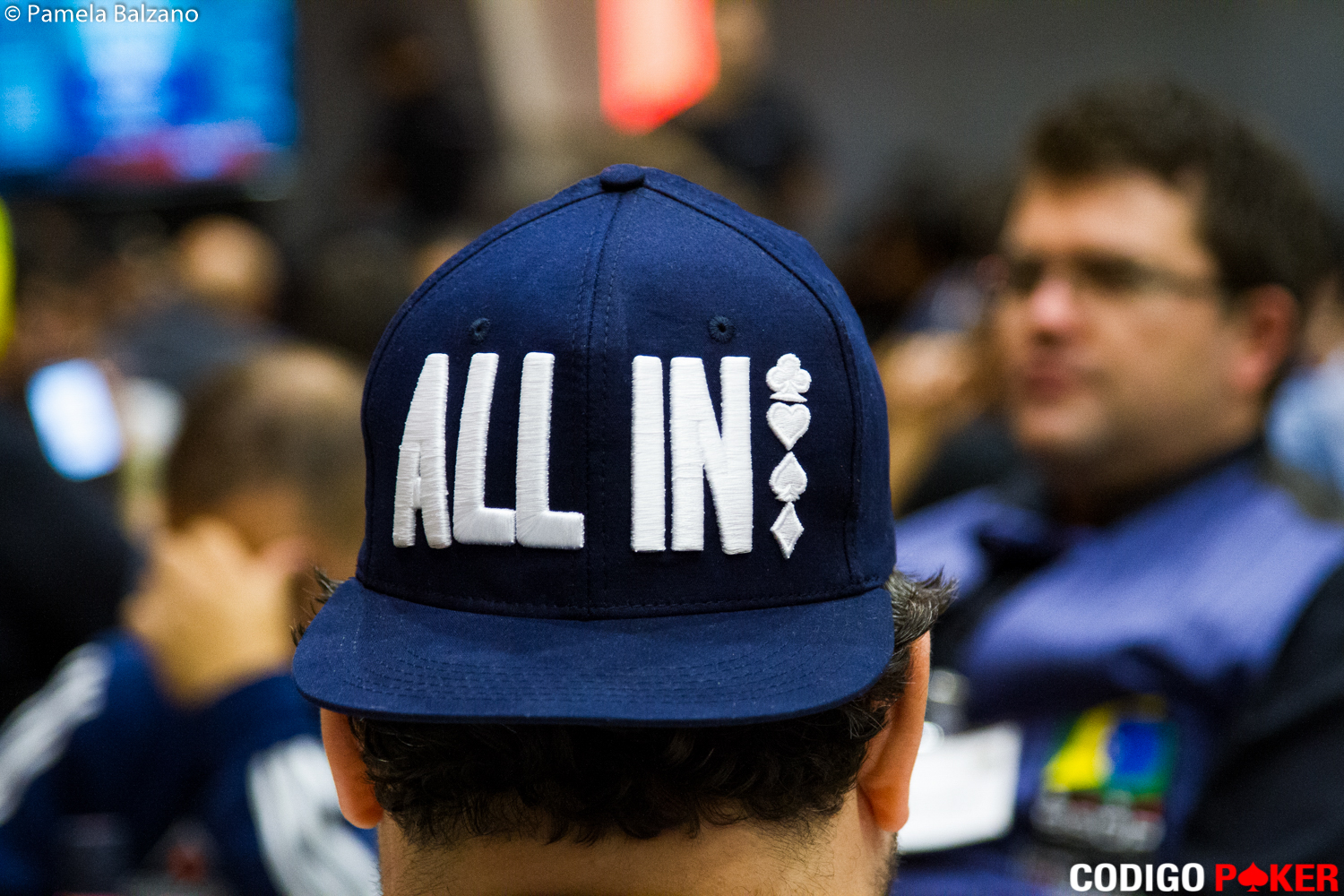 Cuando llegamos a la mesa nos encontramos con el chileno Alex Manzano con sus 95.000 fichas al centro de la mesa desde la ciega chica y el botón, quien lo cubría, también con todos sus puntos sobre el paño.