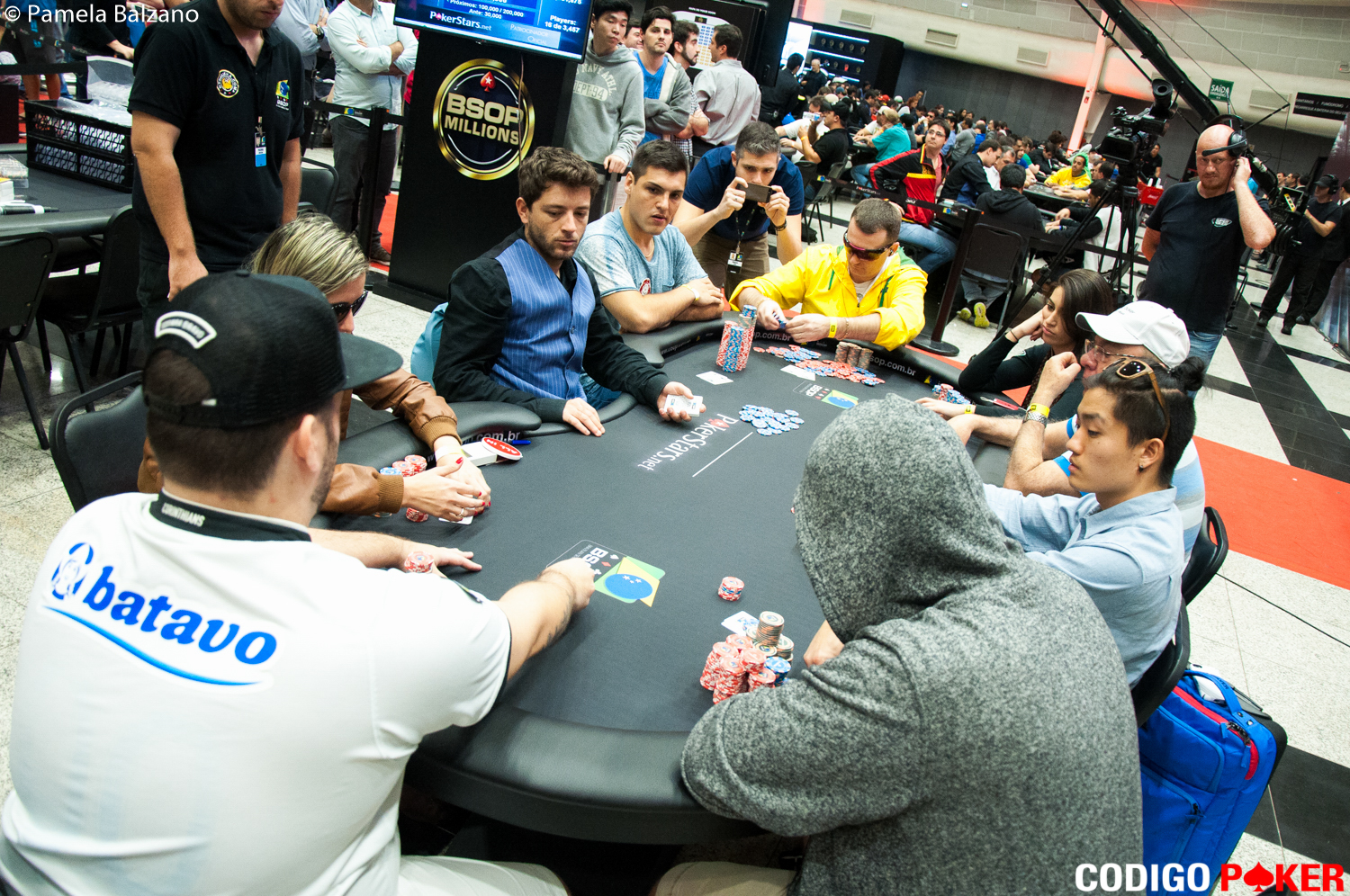 En guerra de ciegas Aloiso Dourado terminó con sus últimas 4.500.000 de fichas al centro de la mesa desde la grande y en la chica Daniel Nagayama aceptó para ver las siguientes cartas: