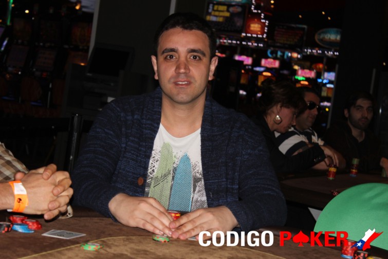 El pakistaní salió mandando all in por 14.000 y Carlos se demoró menos que el Chavo del 8 en comerse una torta de jamón en darle el call mostrando 33 para poker mientras que su rival no mostró. Después de este gran poker Carlos aumentó su stack a 40.000.