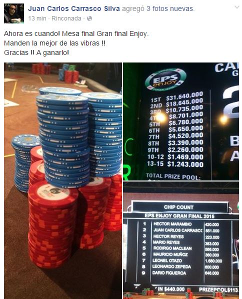 Mario salió mandando 70.000, Otazo subió a 425.000 y Reyes fold