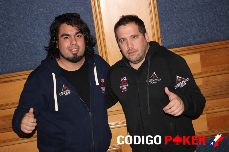 Destacadas figuras del poker nacional lograron superar el primer corte, como por ejemplo, los jugadores profesionales de Chile Live Poker (Red Aconcagua Poker), en la foto de izquierda a derecha, el bicampeón del LAPT, Oscar Alache