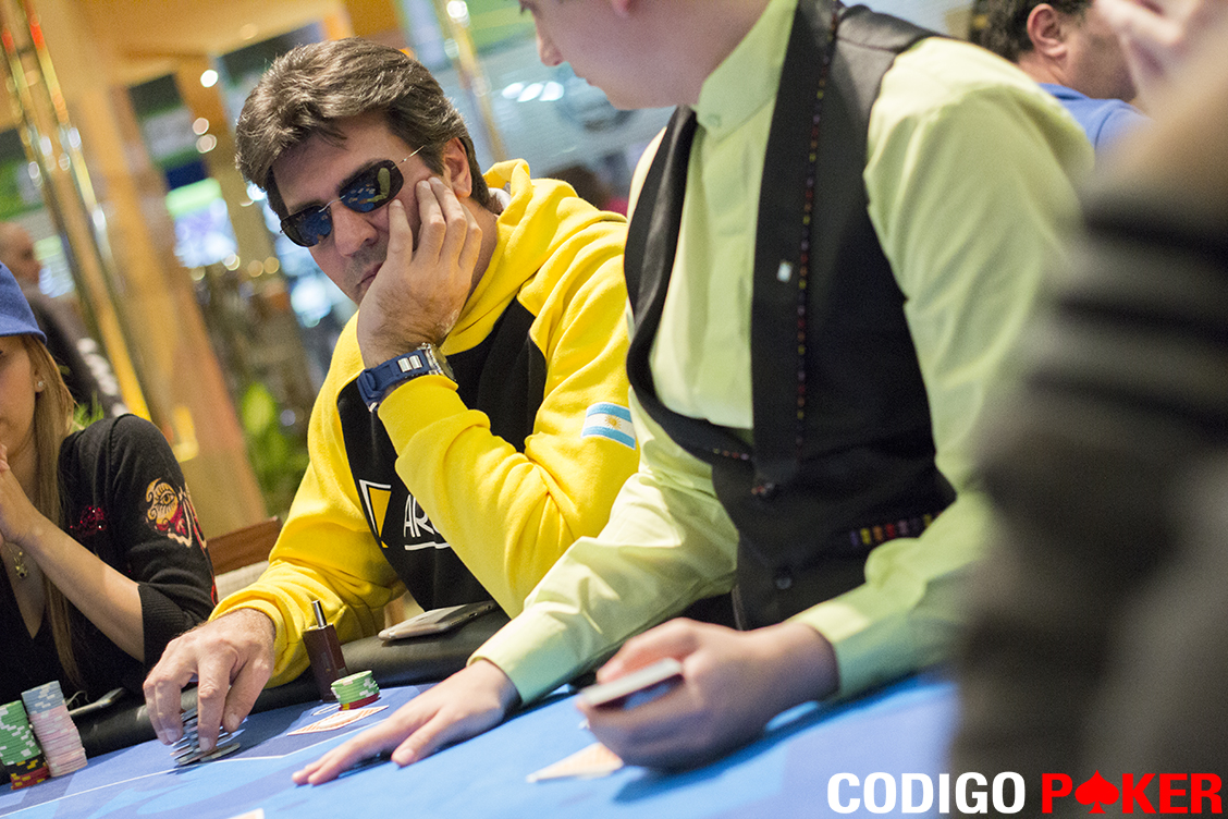 En la mesa 4, la acción empezó cuando, en CO, Gustavo Cuevas abrió a 1.800 fichas y sólo cubrió Gonzalo Araujo en BB.