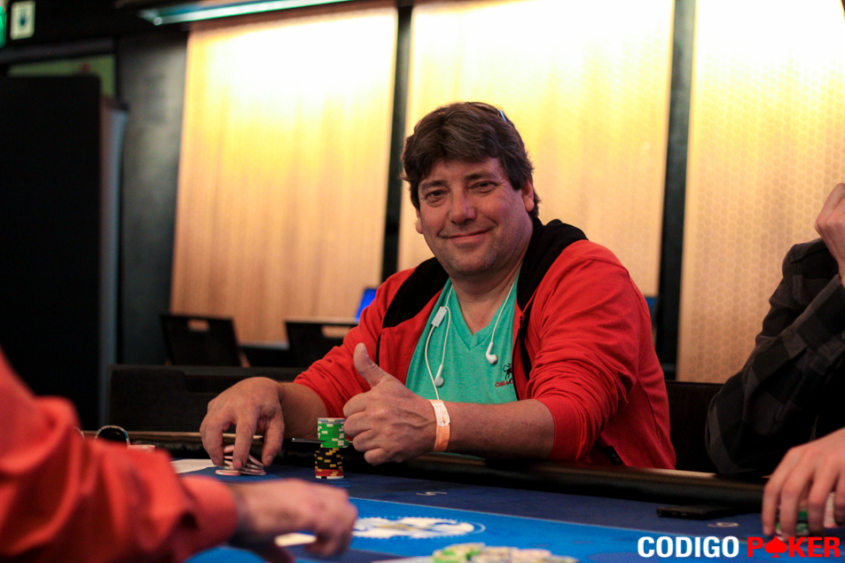En la mesa 46, la mano llegó libre de apuestas a David Fiore que open-raiseó a 825, y el único que se atrevió a pagar fue Juan Manuel García López sentado en BB.