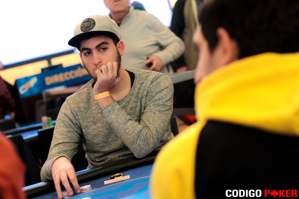 Todo empezó en la mesa 38 cuando Gustavo Oietto open-raiseó a 775 puntos y recibió los calls de Nicolás Ebertz, a su izquierda, y de Nicolás Pacheco desde BB.