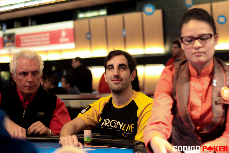 En la mesa 19, en MP, José Lesta abrió a 350. Todos foldearon hasta que, desde CO, Diego Guerrera 3beteó a 825 y el que estaba en posición media cubrió.