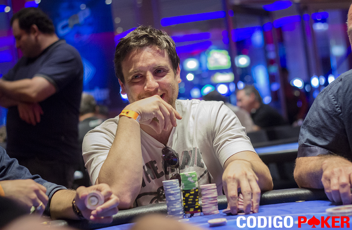 Desde Utg Martín Mondino abrió a 1.300 puntos y justo a su izquierda Fernando Moumdjian le pagó plano. Pero en HJ, Rodrigo «sonmonedas» Pérez dijo 5.600, que ninguno se atrevió a igualar.