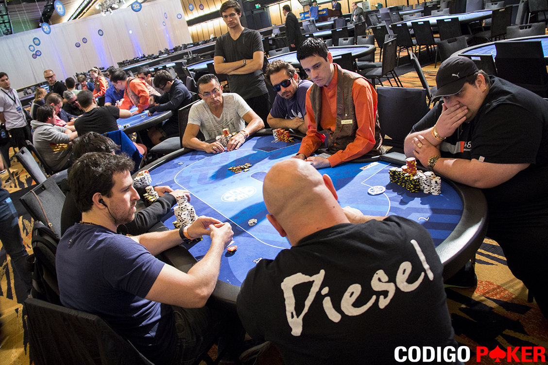 La mano llegó de fold hasta David Perona que abrió por 120.000 puntos en BU y fue pagado por Fernando Di Francesco en la ciega grande y por Cristian Sampaoli en la ciega grande.