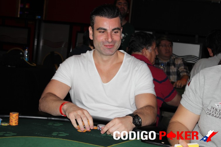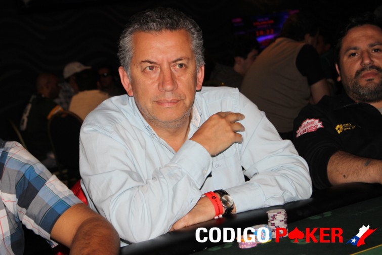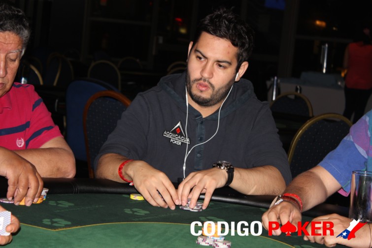 Se trata de Cristian Riffo quien estuvo durante mucho rato corto en fichas y cuando trato de duplicarse jugando todo su stack quedó fuera. Su última mano llegó cuando mandó all in por 96.500 con KJ y Rodrigo Quezada pagó con A2. En las comunitarias apareció un as y eso fue todo para Riffo.