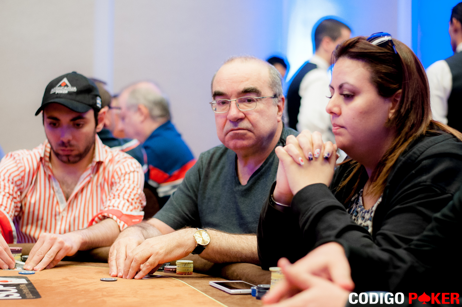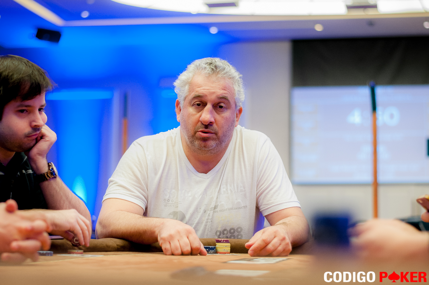 Mientras recorríamos el salón, pudimos ver al señor Ernesto Panno Team Pro Full10 Poker, levantarse de su silla y dirigirse hacia la salida, desconocemos la fatídica mano de su eliminación, pero esperamos verlo mañana en el torneo Second Chance.