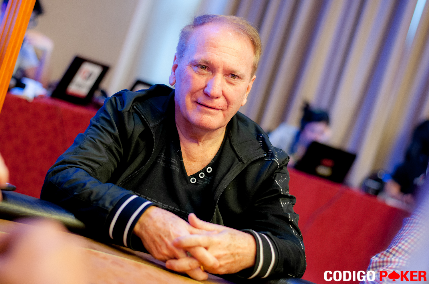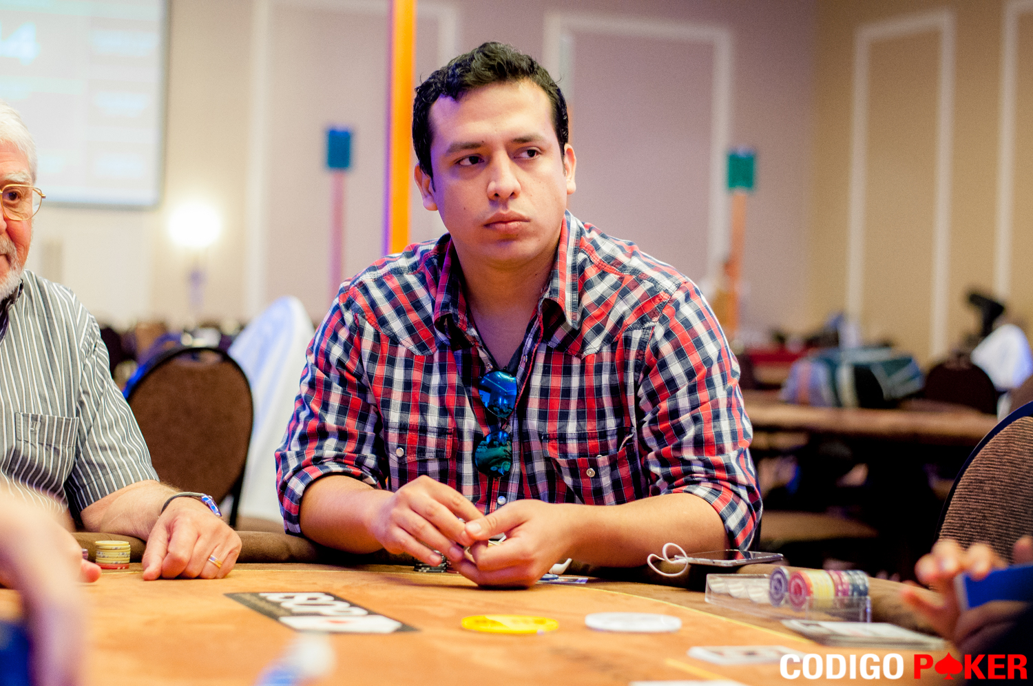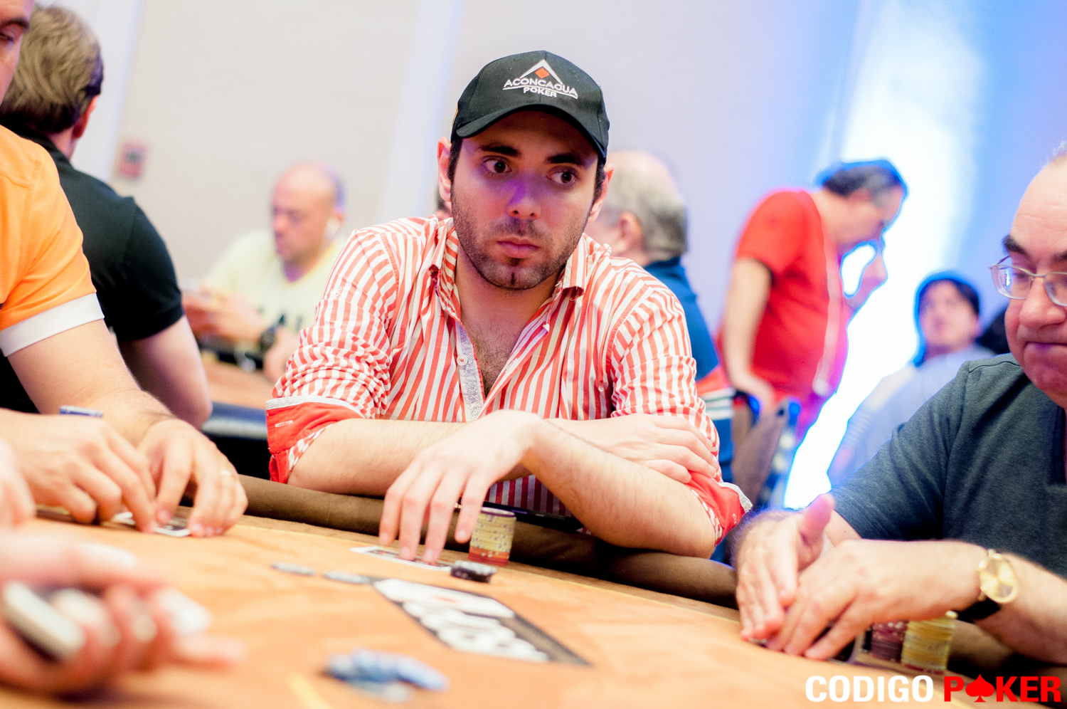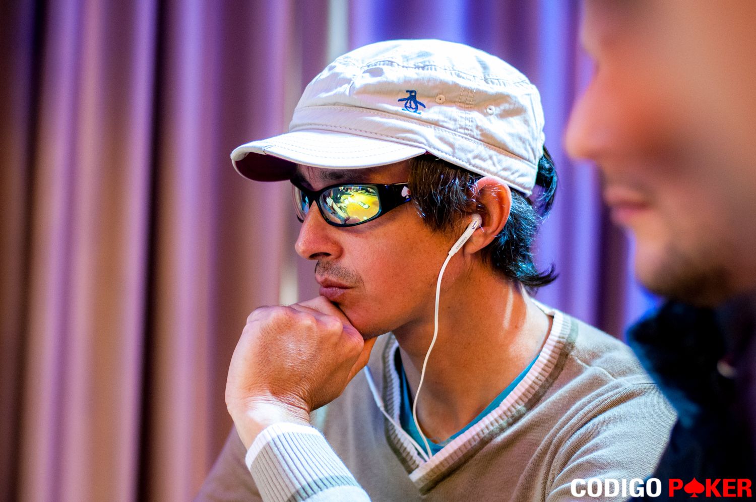 El paraguayo Hugo Cabañas es el líder absoluto cuando está por finalizar el tercer nivel de juego del Día 1C de las ISOP Agosto 2015. Hugo cuenta con un increíble stack de 120.000 puntos en fichas cuando las ciegas están 150/300…