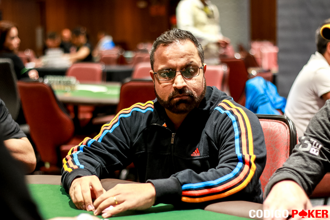 Cuando pasmos por la mesa 4 nos encontramos con un board que mostraba: QK82A y el crupier estaba contando todas las fichas de Derek Ecenarro quien llevaba J10 y logró duplicar su stack hasta llegar a los 38.000 puntos. El que salió perjudicado fue el venezolano Valerio Varela quien se quedó con algo más de 14.000.