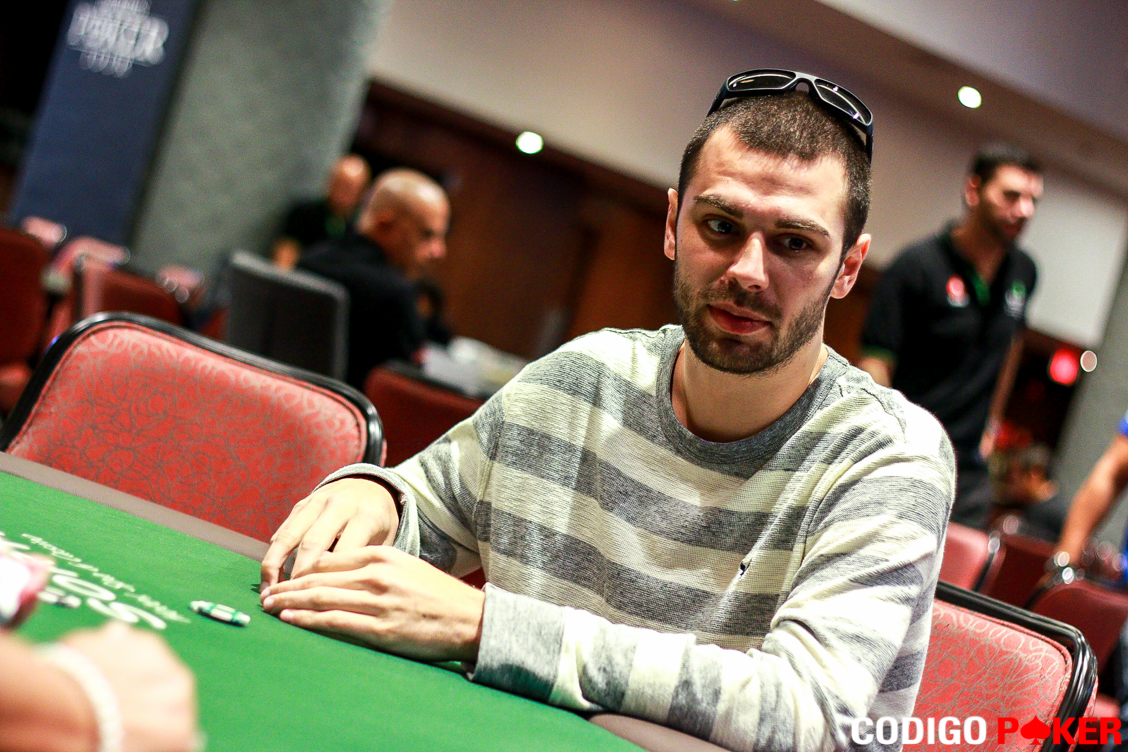 Damas y caballeros acaba de hacer acto de presencial el Jugador Profesional de Aconcagua Poker y defensor del título el señor José Iganacio «Nacho» Barbero quien se ubicó en la posición 5 de la mesa 2 para buscar el back to back.
