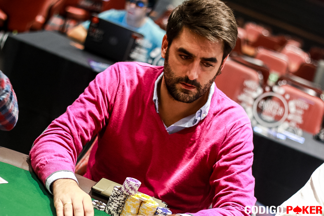 El español Pablo Ubierna acaba de doblar sus fichas dos veces consecutivas primero cuando Aaron Mermelstein lo puso all-in desde la chica a la grande con 106 y Pablo llevaba AJ. A la siguiente mano el norteamericano abrió en el botón con KQ y Ubierna se volvió a jugar esta vez con 77 que aguantaron en las comunitarias para volver a doblarse.