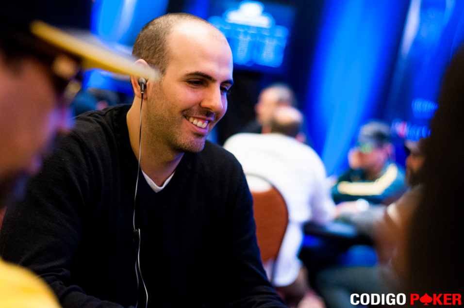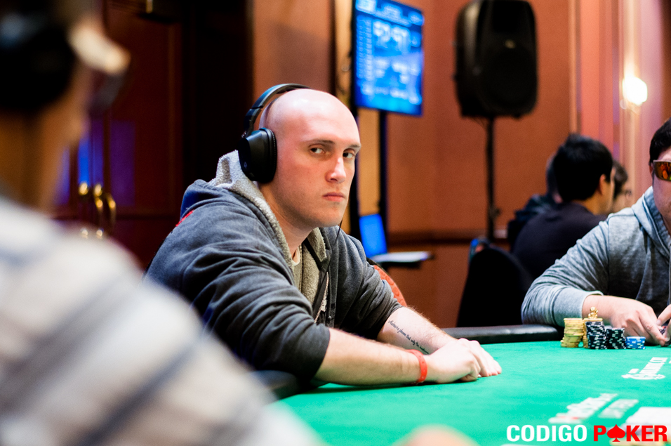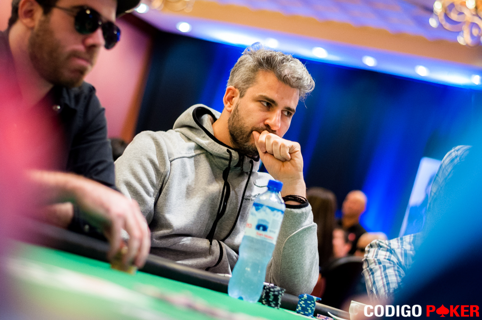 Cuando llegamos a la mesa las comunitarias acusaban: 7J798 y Aldo Zumaeta ya estaba all-in: con 108 y el argentino Nacho Barbero llevaba JJ para eliminar a su rival trepando a los 75.000 puntos.