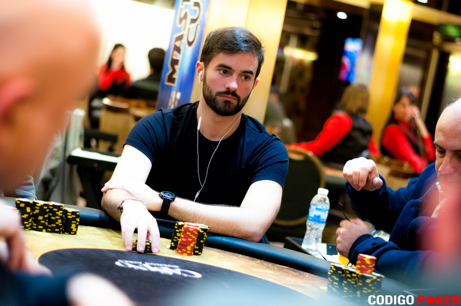 Arribamos a la mesa para ver como sobre un board AK7KFederico Castaing daba check y Aléxis Martínez apostaba 44.000 puntos, igualados por Fede.