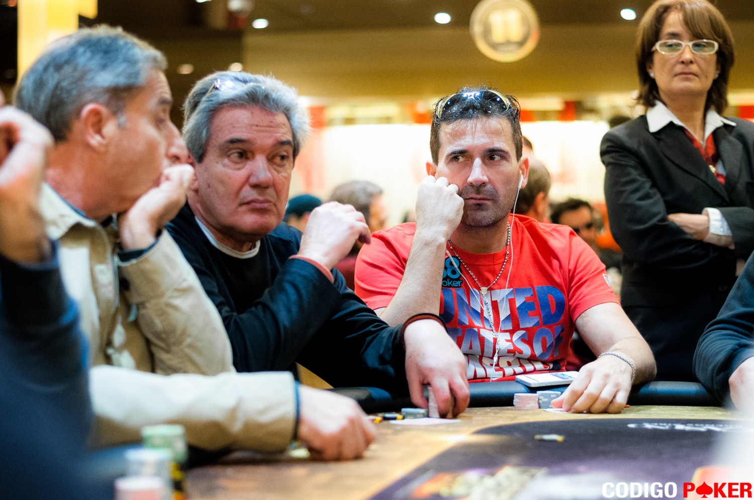 Recorriendo el salón pudimos ver en la mesa 3 al señor Héctor Barúa quien se encuentra muy corto en fichas con tan solo 5.800 puntos.