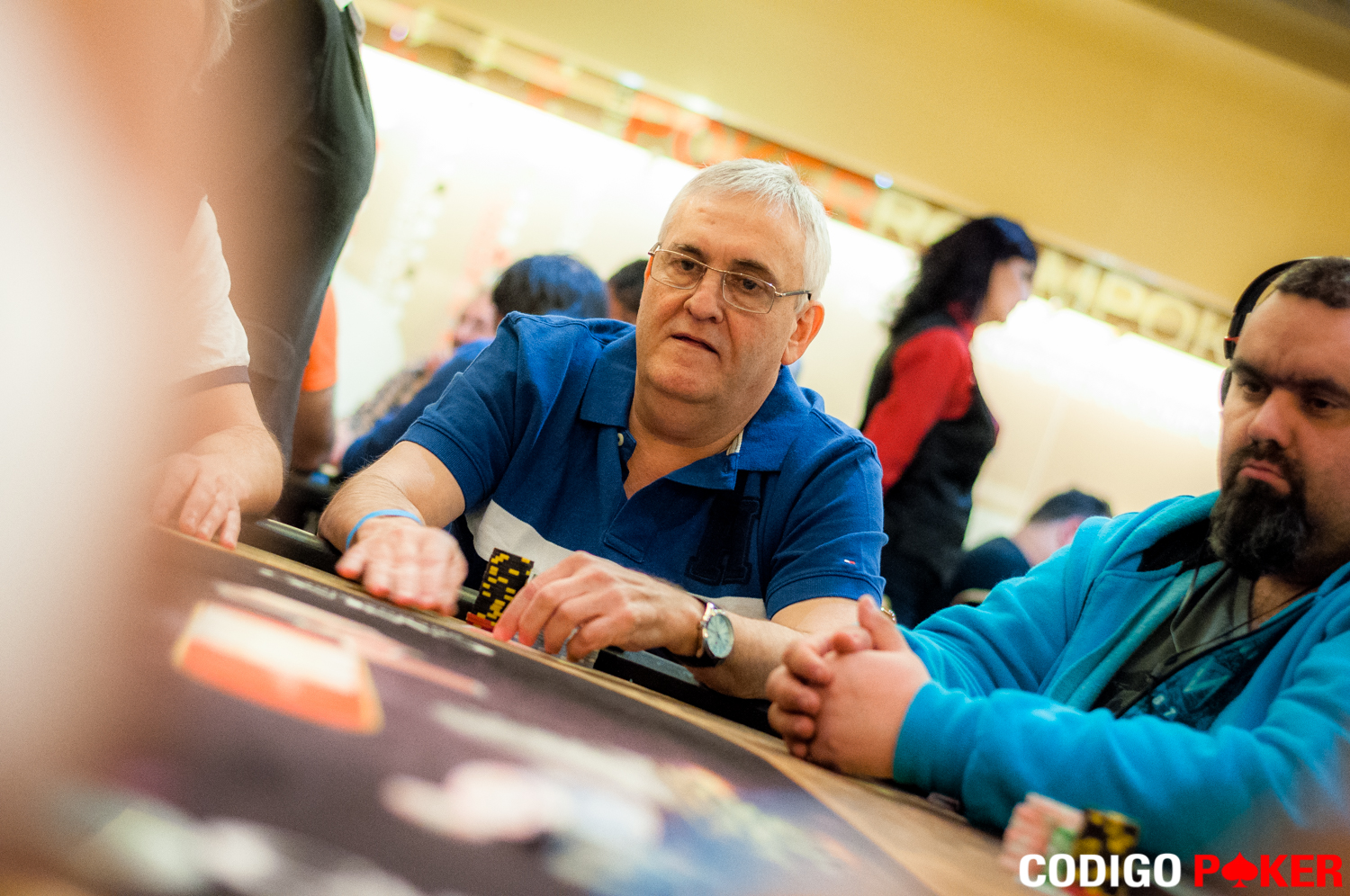 Sergio Bonzini no ha tenido su mejor día pokerísticamente hablando. Ya que le tocaron dos coolers muy feos en contra. El primero con QQ frente a los -Ks- K de José Masciotra y finalmente puso sus últimas ciegas con -Ks- -Kc- para encontrarse con los AA de su verdugo.