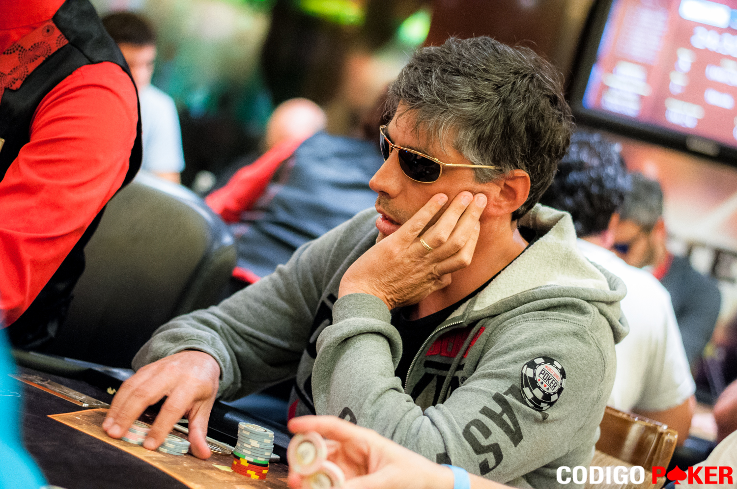 Sergio Bonzini no ha tenido su mejor día pokerísticamente hablando. Ya que le tocaron dos coolers muy feos en contra. El primero con QQ frente a los -Ks- K de José Masciotra y finalmente puso sus últimas ciegas con -Ks- -Kc- para encontrarse con los AA de su verdugo.