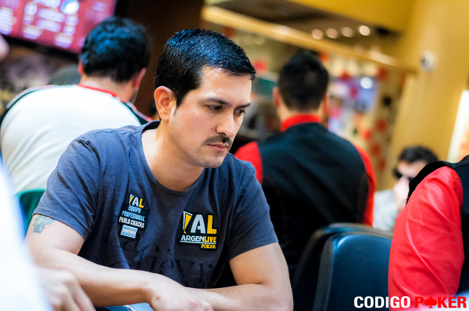 Desde UTG+1 pusheó sus 37.000 puntos Pablo Chacra y desde MP Raúl Camdessus se jugó arriba por 130.000, el resto soltó sus naipes y vimos: