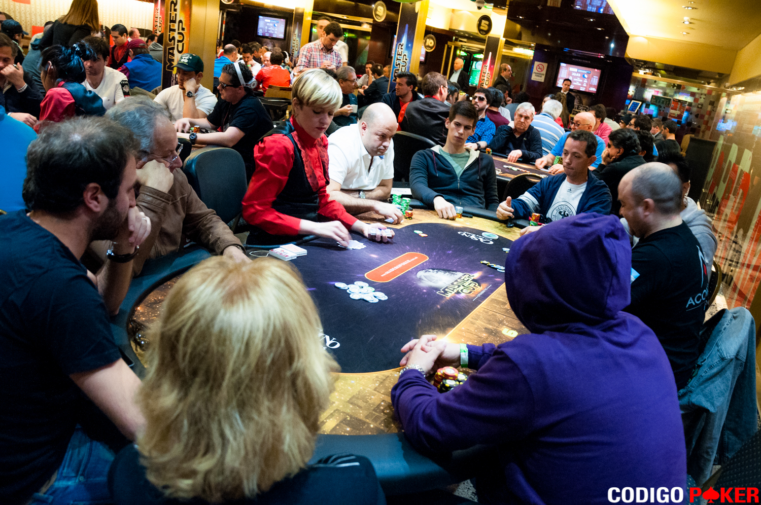Llegamos a la mesa cuando Gustavo Bianchi y Andrés Dos Santos estaban jugados por 12.000 y 7.000 puntos respectivamente y Juan Pablo Caione cubriendo a ambos.