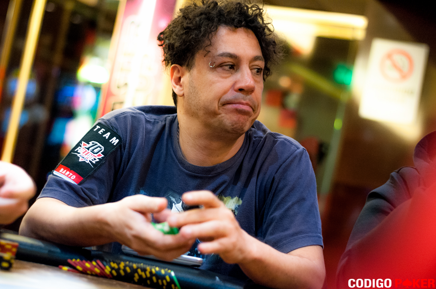 En la mesa 5 se encuentra el popular Team Pro Full10Poker Julio «Bartolo» Belluscio quien en estos momentos cuenta con 75.000 puntos, buscando un double-up que lo meta de lleno en el torneo.