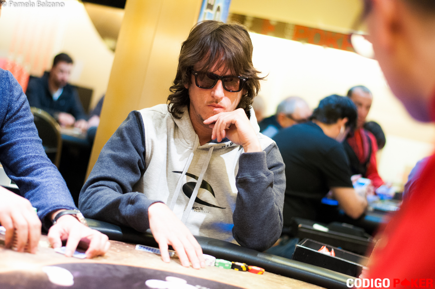Arribamos a la mesa cuando Jorge González daba check para luego pagar en Q94 frente a Luis Cabrera que apostaba 1.500 en un pozo de 4.000 puntos.