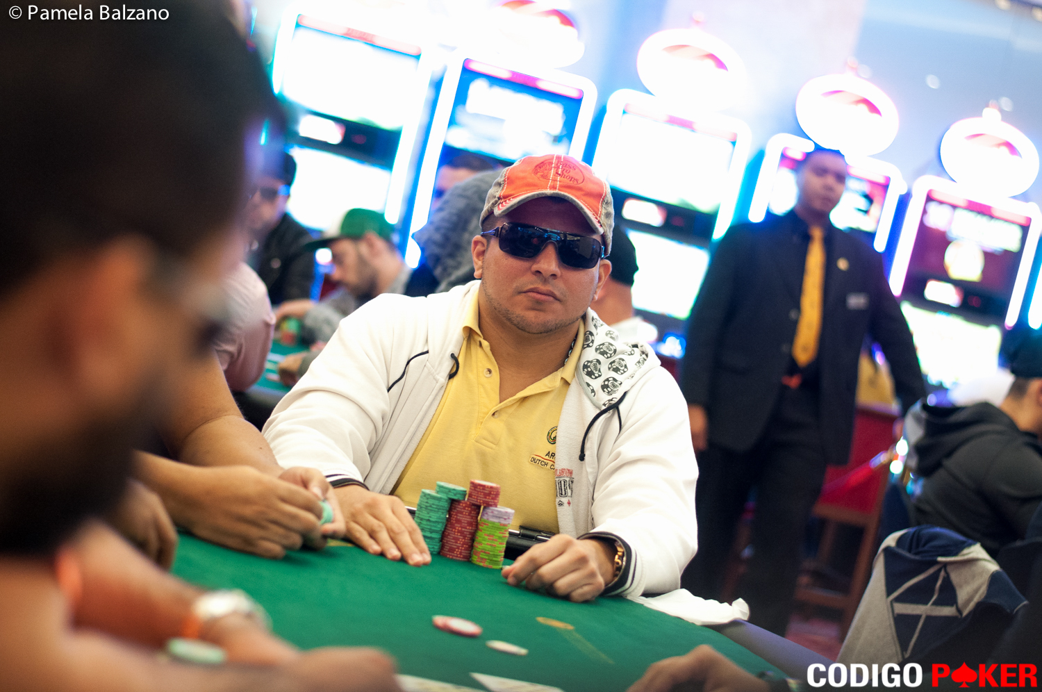 El norteamericano, regular de todos los circuitos de América Latina, y residente en Colombia Carter Gill se encuentra en las inmediaciones del salón sentado y muy relajado esperando el momento oportuno para ingresar a jugar el Peter’s Poker Tour 2015.
