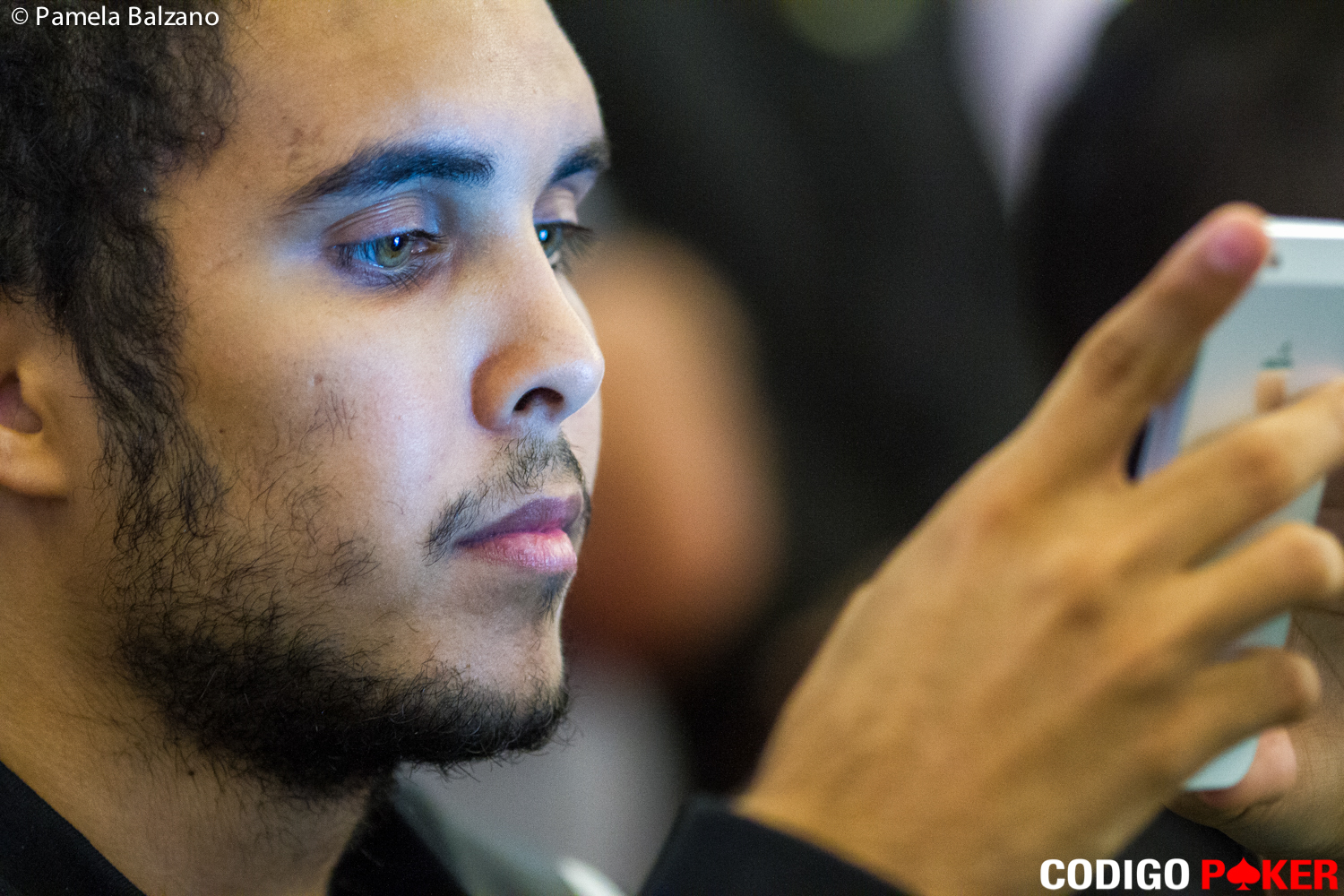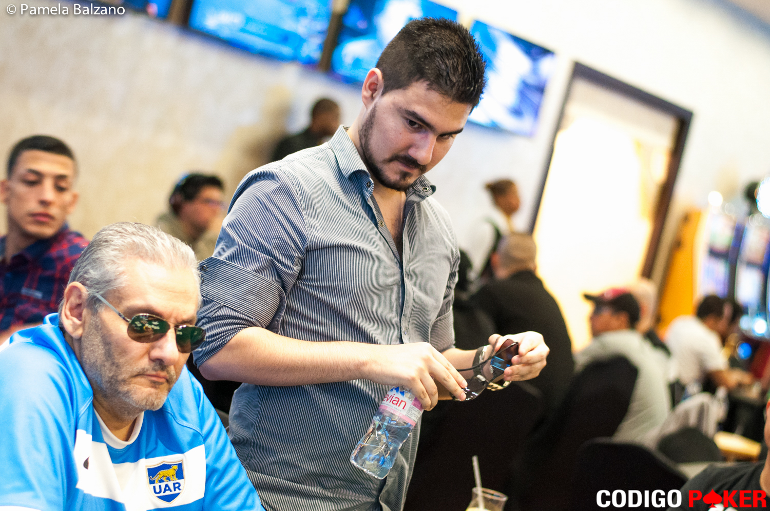 Emiliano Suárez acaba de doblar sus fichas cuando terminó con sus últimas 6.000 fichas al centro de la mesa desde el botón con AQ y HJ pagó con JJ. Al flop voló un A suficientes para que el venezolano doble sus fichas llegando a los 15.000 puntos.