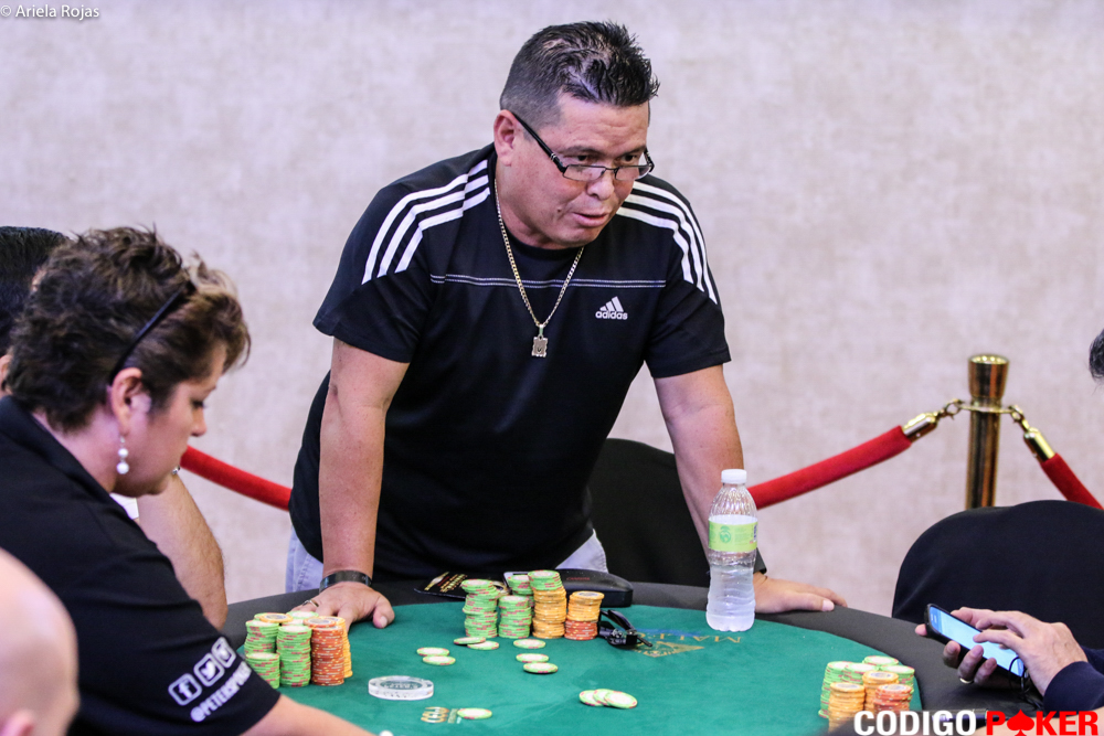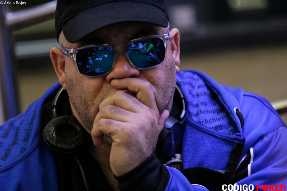 Hace instantes vimos pasar a José Manuel De La Rosa que se retiraba del salón. Cuando nos acercamos a su mesa, Frank Naranjo nos comentó que su rival traía AA y el llevaba 1010. Al caer el 10 en el flop, inclinó la balanza a su favor, y lo dejó sin puntos.