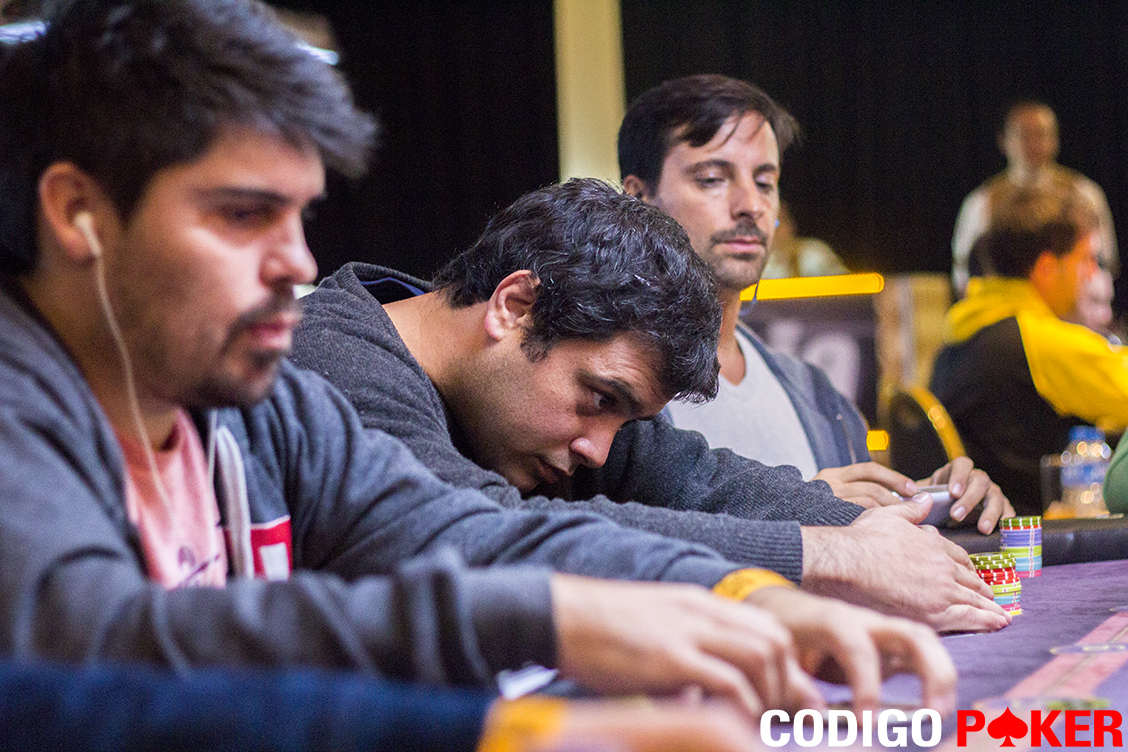 Hugo hizo check y Jorge mandó 2.500 puntos que fueron raiseados por Casas hasta 5.000. Rueda lo pensó por un momento y terminó por foldear sus cartas.