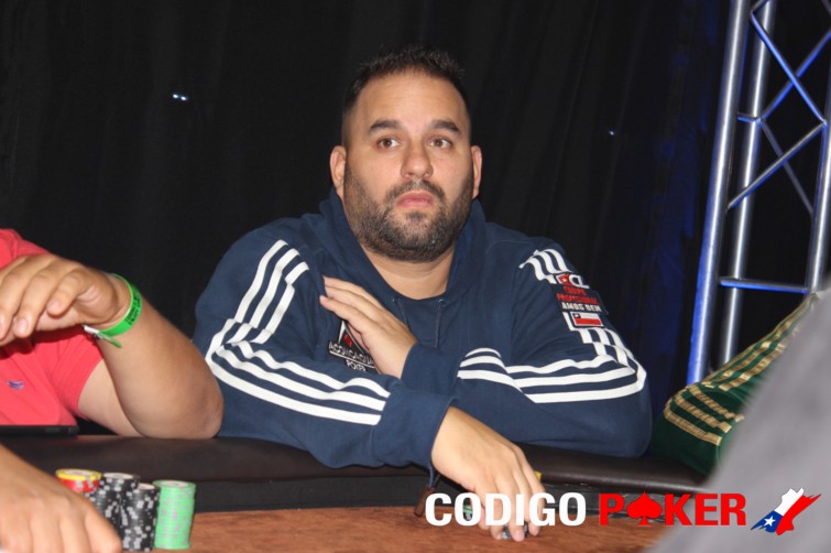 En UTG Juan Parra mandó all in por 27.500 y en la BB Juan Aguirre dio el call enseñando AK mientras que el primero A10. En las comunitarias apareció un rey y con esto la leyenda quedó fuera, mientras que Aguirre aumentó su stack a 140.000.