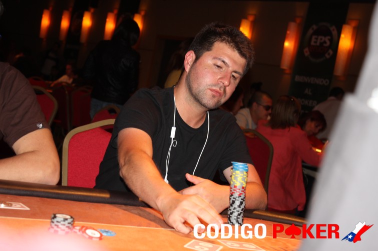 Se trata de Andrés Calderon, quien quedó eliminado. Desde UTG+1 comenzó limpeando y Cristian Mendoza en el CO apostó 625, el primero call.