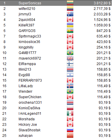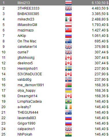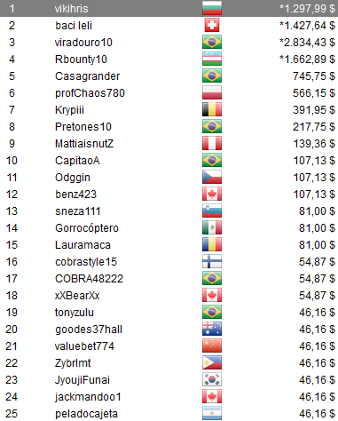 Otros jugadores de latinoamérica se destacaron en la jornada de ayer logrando hermosos premios. En el The Bigger $27,50 el costarricense lllini213 alzó el título y conquistó los u$s 6.130,50 que esperaban por el campeón. En el The Hotter $55, el charrúa epibrulu