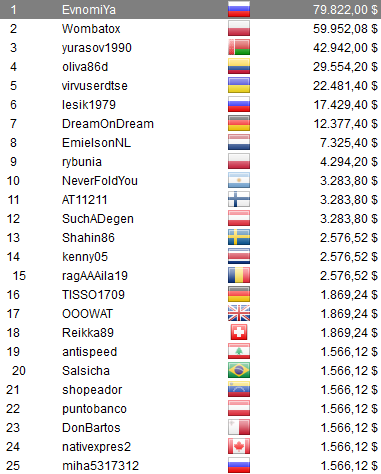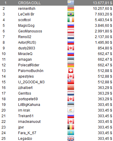 quedó séptimo por u$s 3.122,72. Por el lado venezolano, el jugador shopeador añadió u$s 1.112,73 a su cuenta producto del octavo puesto en el The Hotter $33. Por ultimo, pero no menos importante, wilfer0210
