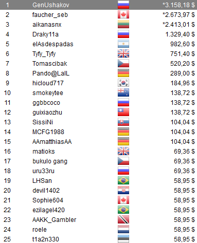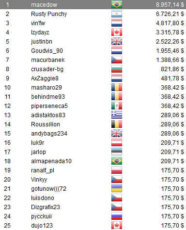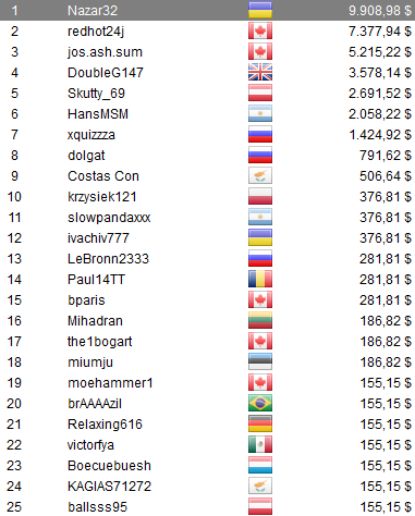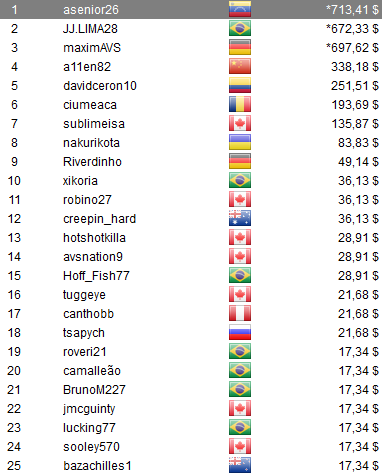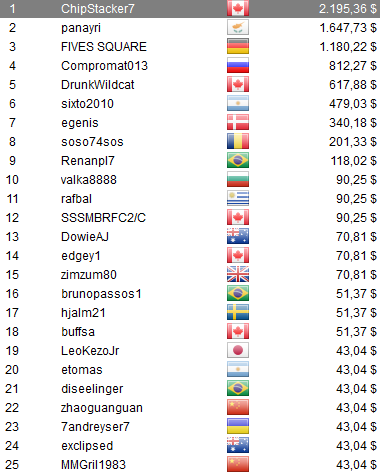 , alias Rusty Punchy, al quedar a un paso del título en el The Big $22 para llevarse u$s 6.726,21. Además, otros jugadores albicelestes se destacaron, ellos fueron; HansMSM