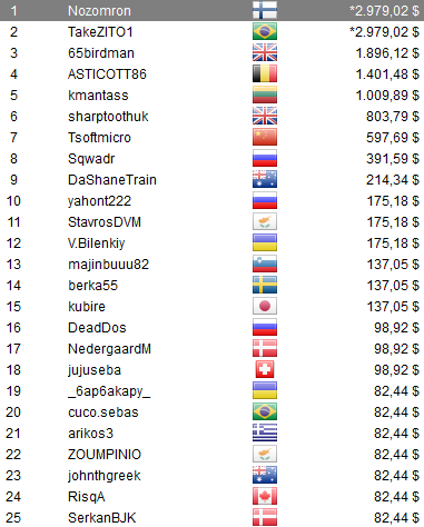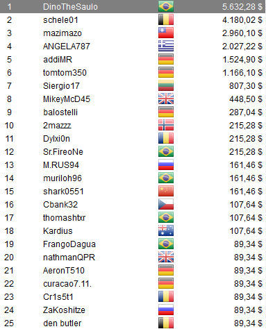 La bandera de Chile flameó bien arriba en el The Hot $11, precisamente en la séptima posición, depositada allí por el jugador «Esteban_0811»