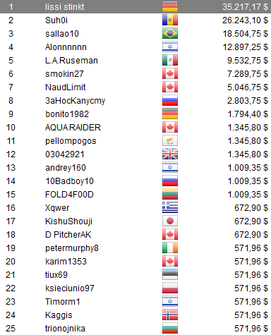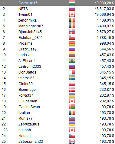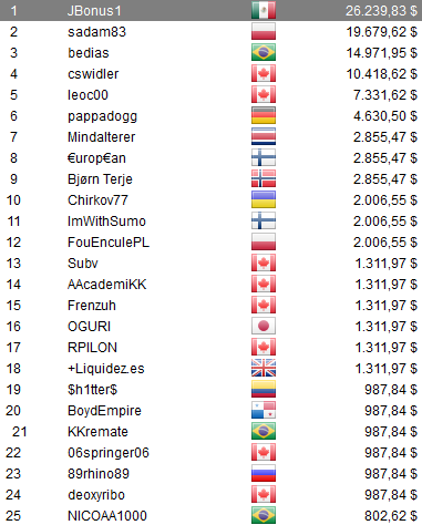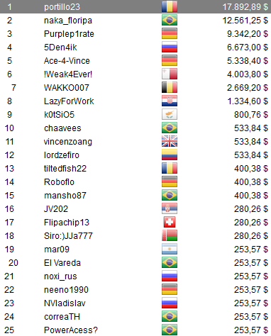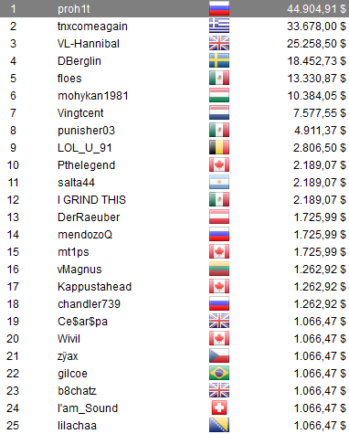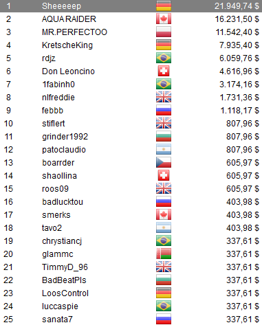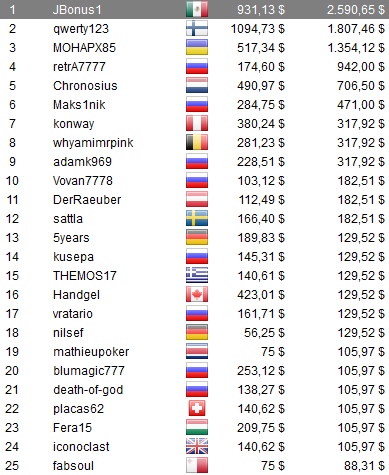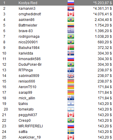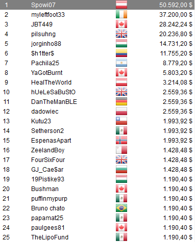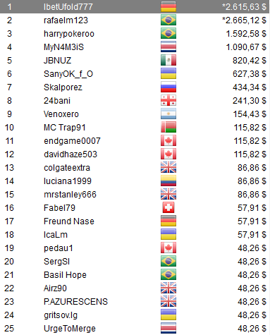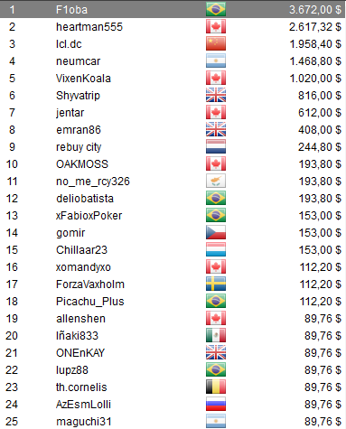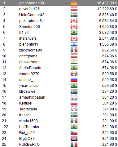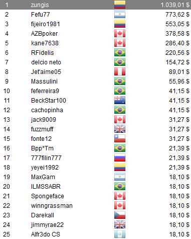 séptimo en el $82 PL Omaha H/L (6-Max, Progressive Super KO), el primero sumó u$s 2.645,25 y, el segundo, casi u$s 700 entre premio y recompensas por eliminación.